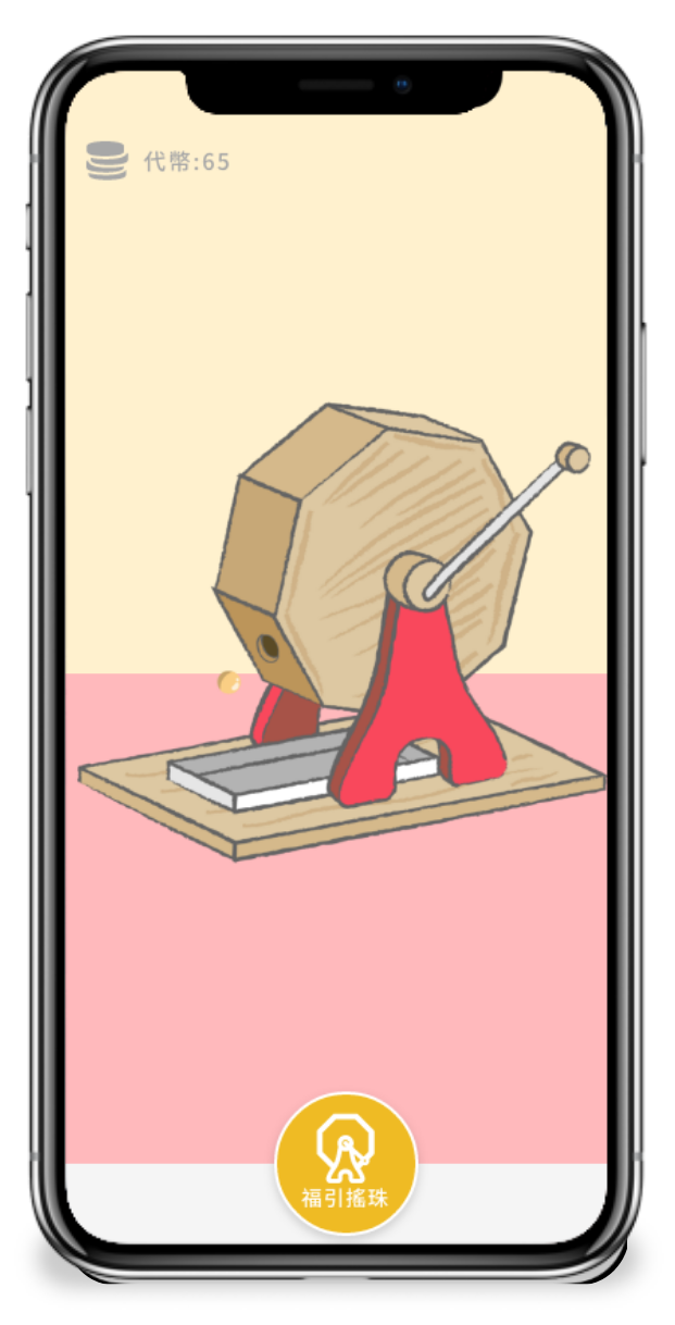 模擬日本市集常見的福引機,讓使用者可在手機上點選後,直接啟動福引機。