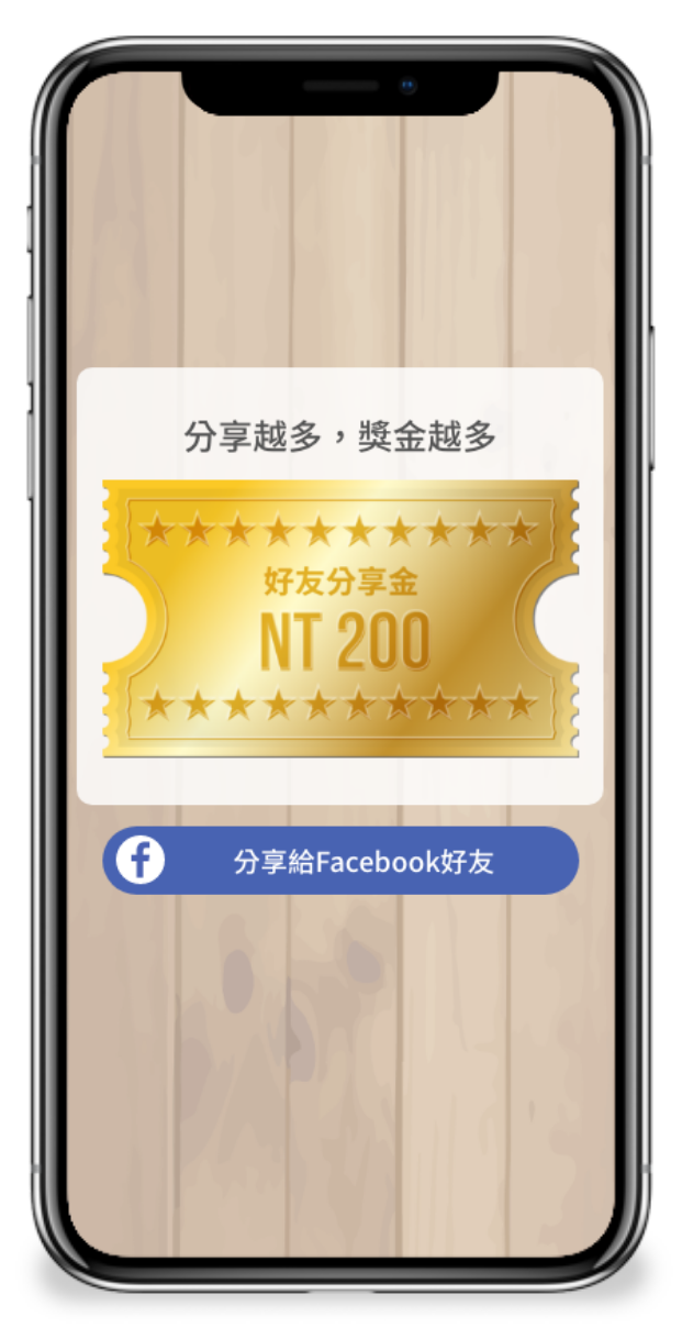 此為增加新會員最有效的遊戲,凡消費者將活動訊息分享給好友,好友參與活動即可獲得獎勵。