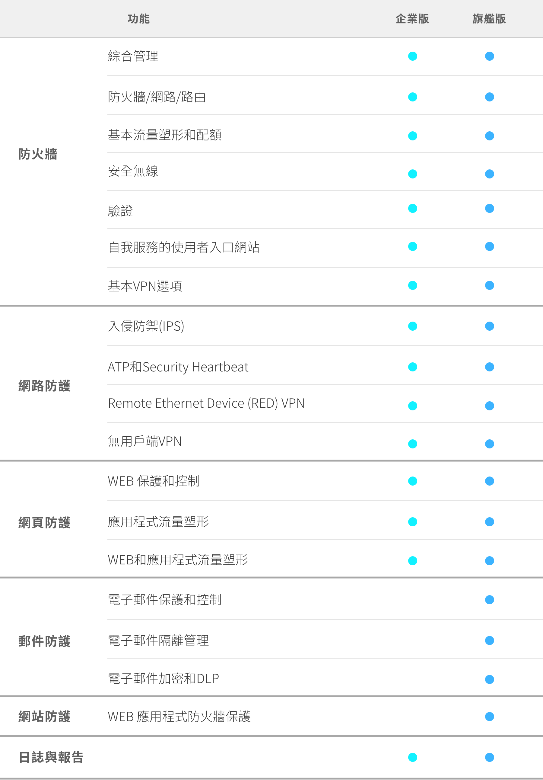- 輕鬆管理網路、資安、應用程式:不論IPS、QoS、Web防護、App Ctrl、NAT、Routing...等資安及網路政策設定,皆透過同一頁面進行檢視/編輯。透過Intercept X端點方案提供無與倫比的可視性,智慧管理不是夢。