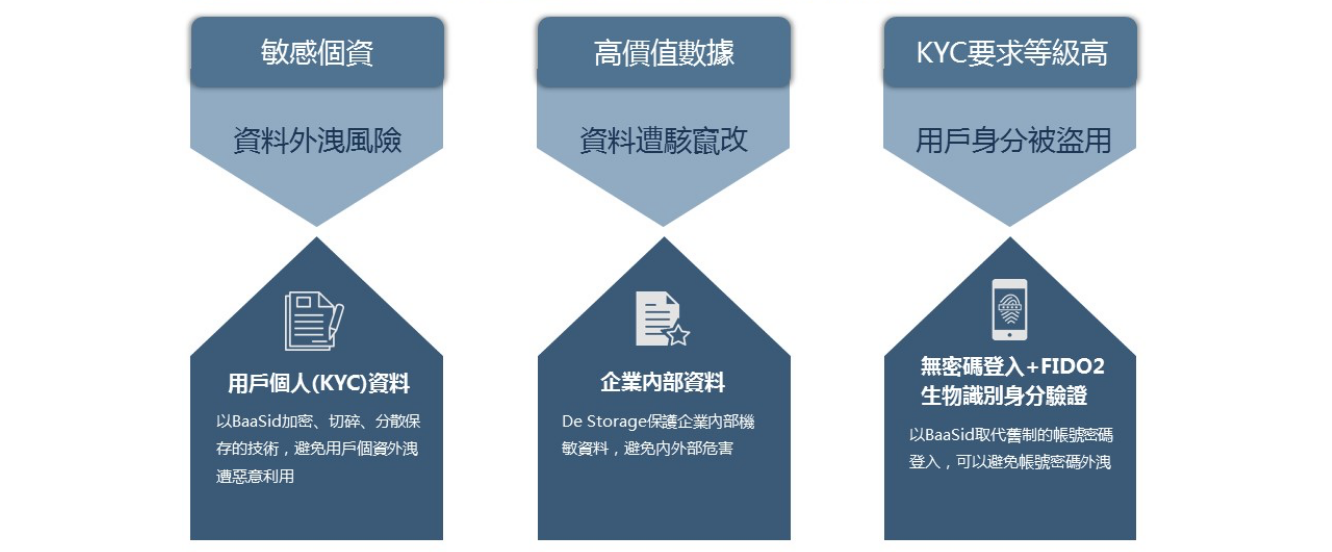 近年來資安事件頻傳,政府、企業面對的潛在風險也日益增加,岢成攜手本土區塊鏈專家BaaSid,開發出以區塊鏈技術為基礎的”Soteria區塊鏈技術資料安全保存”與”Pistis區塊鏈技術分散式身分識別”兩大類型的服務應用產品,解決個人身分識別的安全與資訊交換安全的問題。